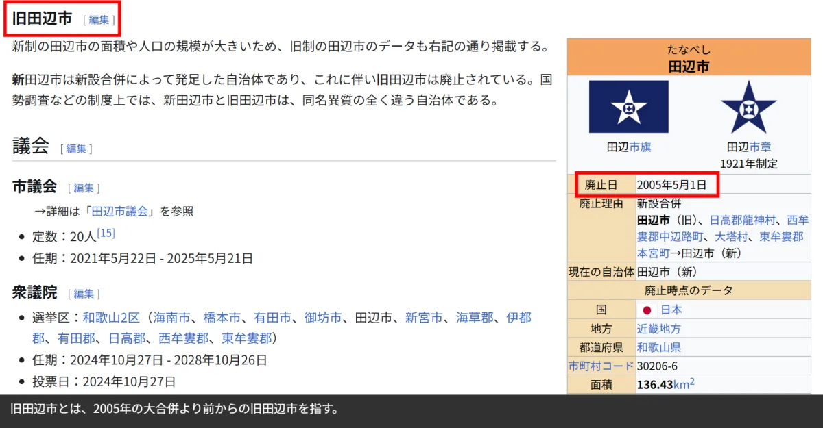 なお、旧田辺市とは、2005年の大合併より前からの旧田辺市を指すようです。